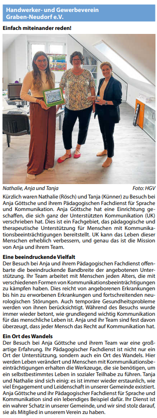 Besuch des Handwerker und Gewerbevereins Graben Neudorf e.V. beim Pädagogischen Fachdienst